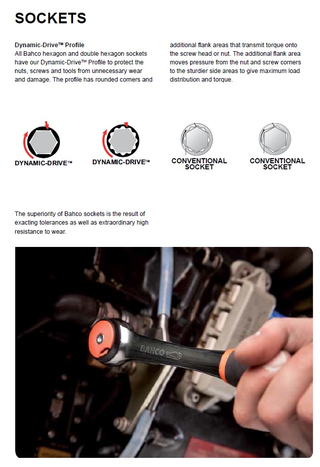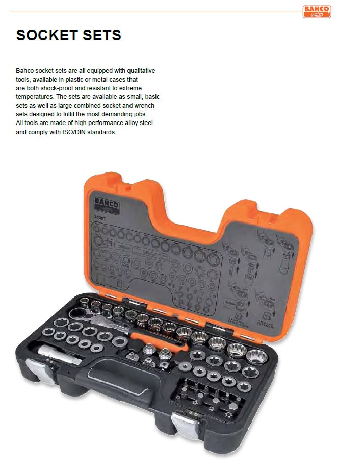 Bahco מציעה מגוון רחב של בוקסות, ידיות רצ'ט ratchets ואביזרי הנעה שונים ועומדת בדרישות הרבות של כלל המשתמשים המקצועיים. אודות  לניסיון הרב שצברה יותר מ -125 שנים.
