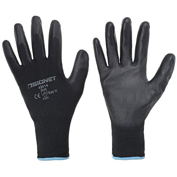כפפות עבודה PU-שחור: ציפוי כל היד ב-PU בשכבה של 13G,לסוגי עבודות שונות,עמידות גבוהה בפני שפשוף מקטים:049014,049015,049017 SIGNET