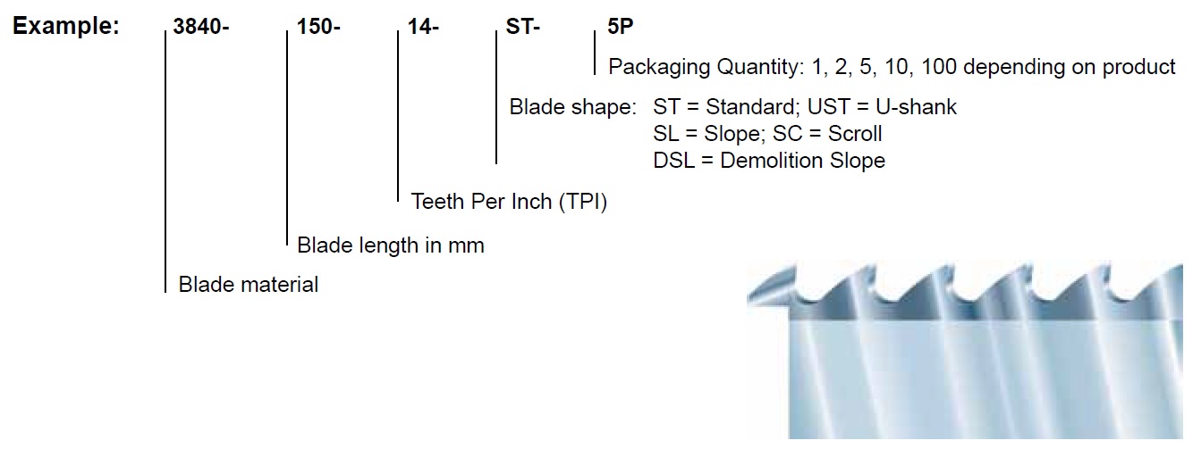 כך צריך לקרוא את קודי המוצר ללהבי בקו למסורי חרב.