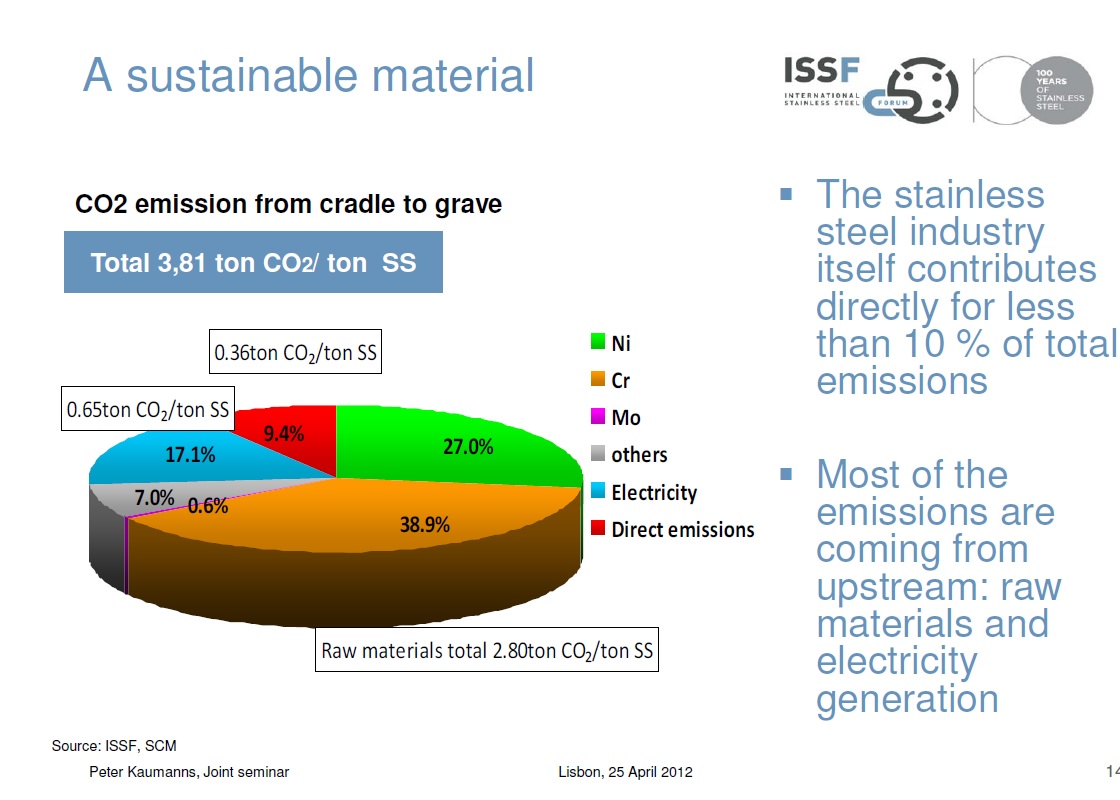 חומרי הגלם תורמים 2.80 טונות CO2 לכל טון פלדת אלחלד - נירוסטה