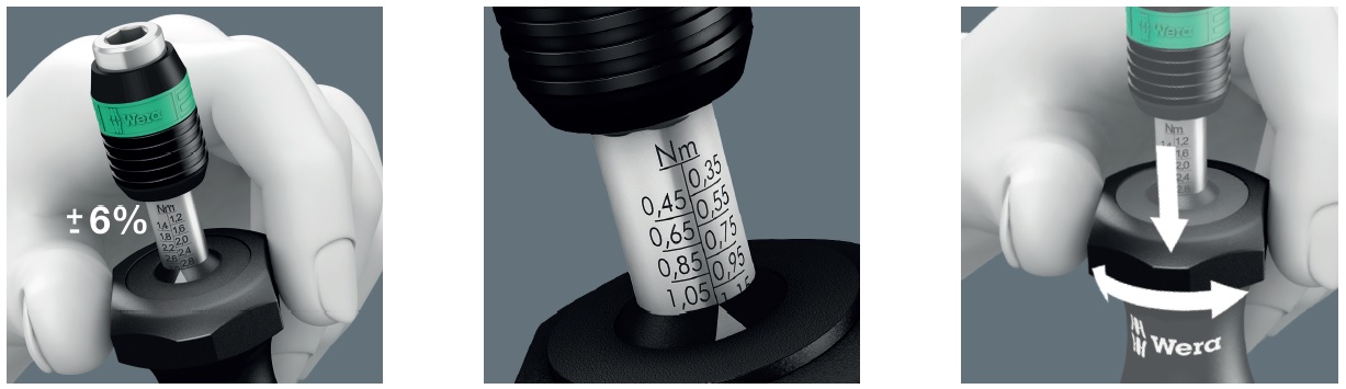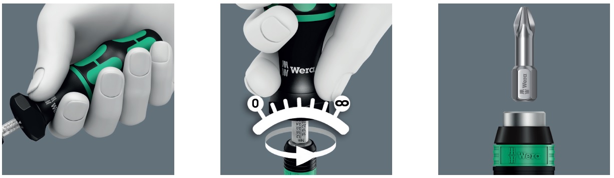 המברגים עם כיוון המומנט המשתנה של Wera מאפשרים לקבוע קביעות מומנט משתנות בדיוק מקסימלי.