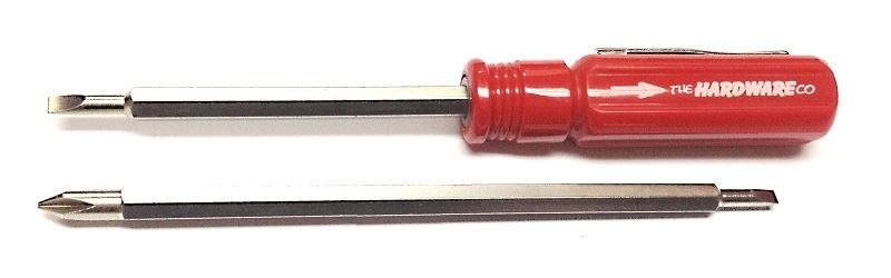 מברג מתחלף מיני מקצועי מתחלף דו צדדי עם קליפ, הידית עשויה מפוליקרבונט -חזק ביותר, הביט עשוי מכרום-מוליבדניום-וגם מגנטי, שפיץ ישר רוחב 3מ"מ מתאים למהדקים לכבל חשמל ולעבודות אלקטרוניקה, מתאים לברגי פילפס 1 ו- 2 וגם לברגי פוזי 1 ו-2, מקט: 21