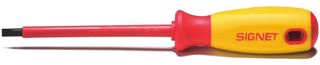 מברגים שטוחים מבודדים 1000V, אורך כללי: 75-150 מ"מ, רוחב להב: 2.5מ"מ,3מ"מ,4מ"מ,5מ"מ,6.5מ"מ, מקטים: 052595-052602 SIGNET