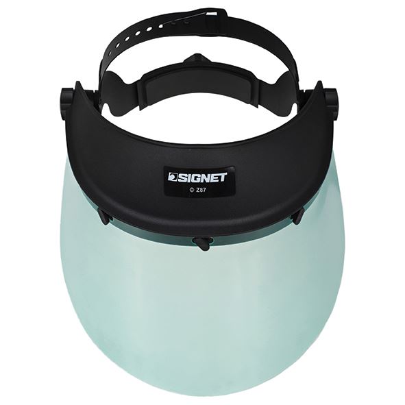 מגן פנים,ראשיה מתכווננת בפעולת רצ'ט כולל רצועה נגד הזעה,מידות החזית: 375x200, הגנה מכאנית ברמה של 120 m/s מקט:049085 SIGNET