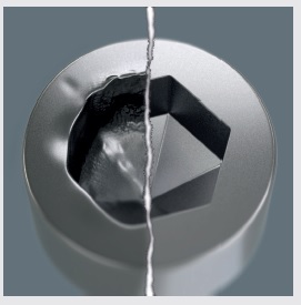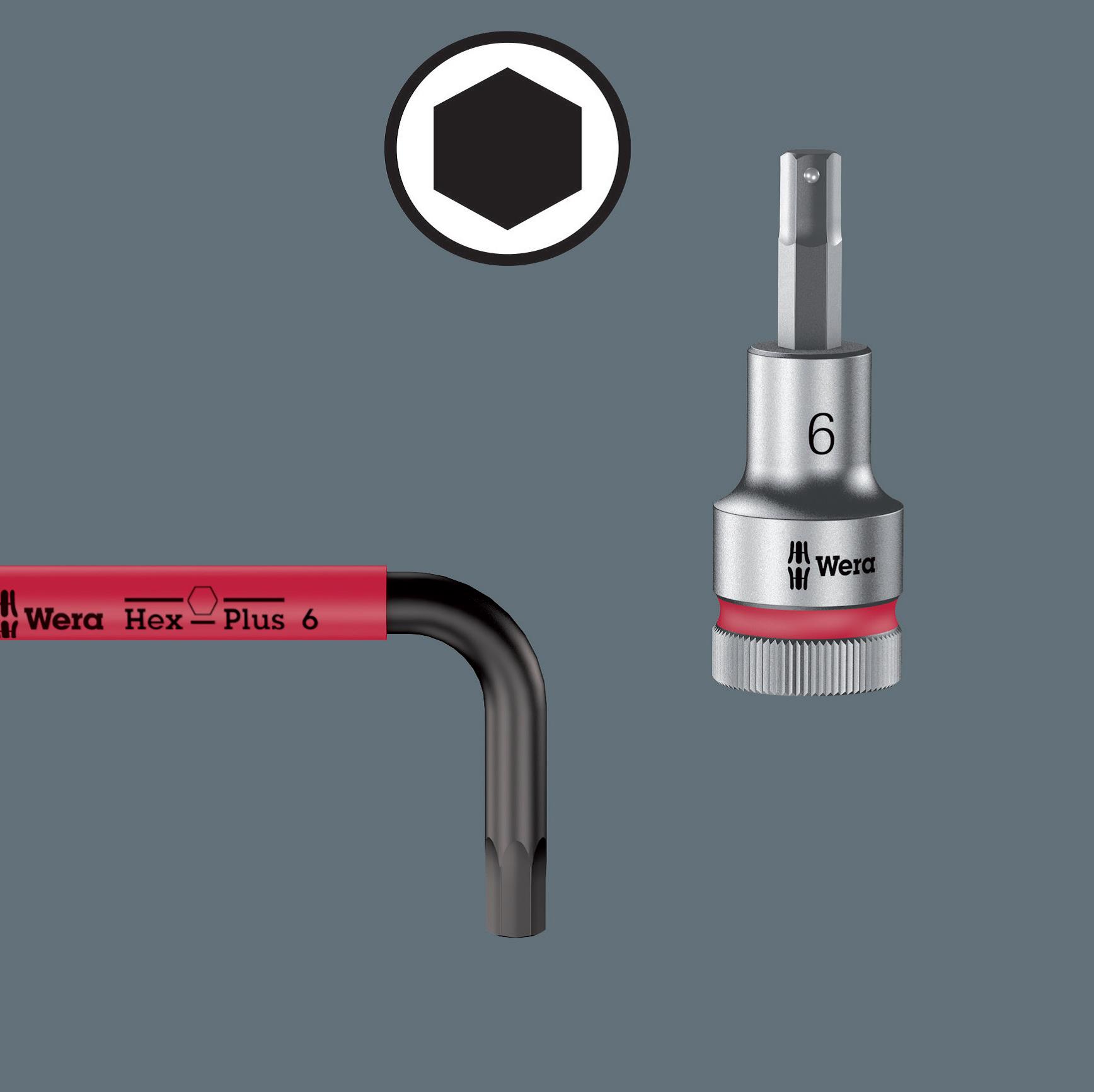 לכלי Hex-Plus של Wera יש שטח מגע גדול יותר בראש הבורג. אפקט החריצה מופחת ולכן גם העיוות הנגרם