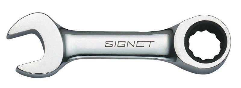 מפתח רינג פתוח רצ'ט קצר (אינצ'י) מידות:3/8";7/16";1/2";9/16";5/8";11/16";3/4", אורכים:94 מ"מ;102 מ"מ;105 מ"מ;107 מ"מ;118 מ"מ;126 מ"מ;138 מ"מ מקטים:034131-034137 SIGNET