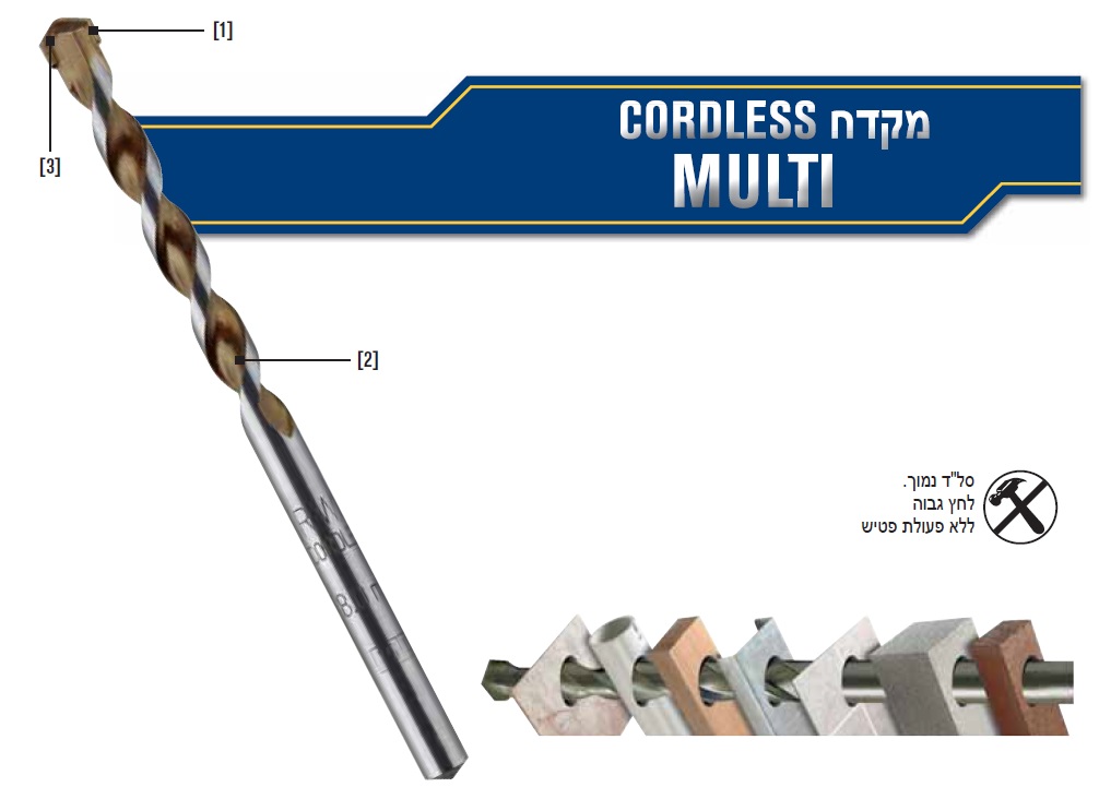 מקדח אחד לכל חומר- מקדח CORDLESS MULTI הוא המקדל הורסיטלי ביותר של IRWIN. הוא מיועד לקדוח במגוון חומרים כולל לבנים, בטון קל, קיר גבס, אריחי קרמיקה, פח , פלסטיק ושיש. בנוסף למגוון הפונקציות , CORDLESS MULTI הוא פותר הבעיות הטוב ביותר של IRWIN לקידוח באריחי קרמיקה עד דרגת קושי של 9.