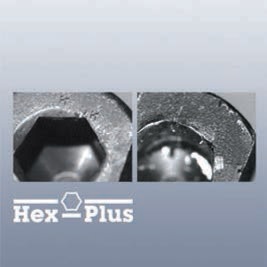 HEX PLUS מספק יותר משטחי מגע בראש הבורג. הדבר מפחית את אפקט החריצה למינימום וכמעט מונע לחלוטין את התעגלות ראש הבורג.