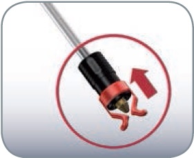 משוך את תופס הבורג לכיוון ידית המברג עד ששתי זרועות התופס ישבו כנגד ראש הבורג ויתפשקו מעט לצדדים. תופס הברגים של WERA משחרר את הבורג באופן אוטומטי לאחר שהוא הודק.