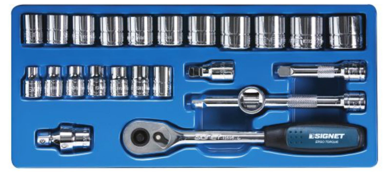סט בוקסה בקופסת מתכת "3/8 24 יחידות, תחום עבודה: 6-24 מ"מ, מקט: SIGNET 012891