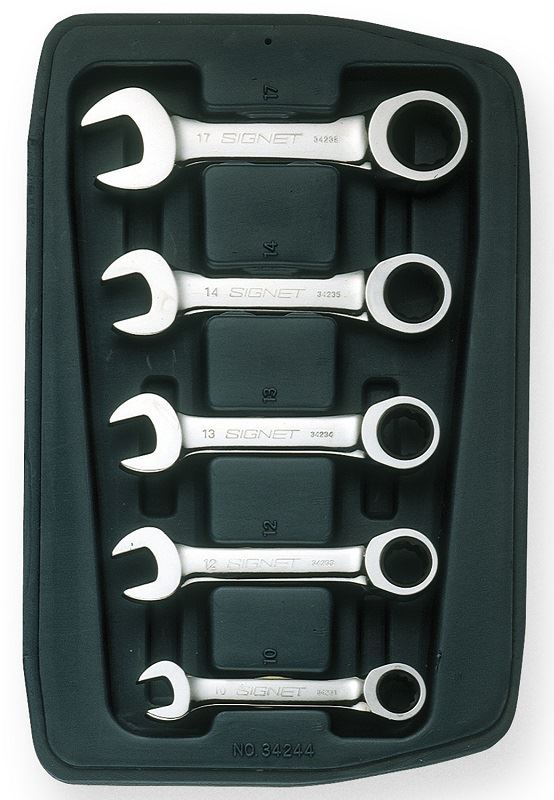 סט מפתחות רינג פתוח רצ'ט קצר 10-19 מ"מ 7 יחידות מקט:034245 SIGNET