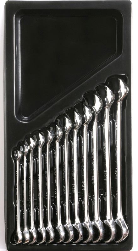 סט מפתחות רינג פתוח רצ'ט 8-19 מ"מ 12 יחידות מידות מגש:190x380 מ מ"מקט:055504 SIGNET