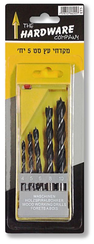 סט מקדחי עץ 5 מקדחים בקופסת פלסטיק, סט 4-10 מ"מ, מקט: ET5