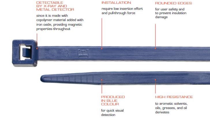 המוצרים שלנו מכילים פיגמנטים של מתכת המפוזרים באופן אחיד כדי לאפשר גילוי בקלות של כל חלקיק מתכת. אנו מציעים מגוון רחב של אזיקונים, עם יכולת גילוי מתכת זהה לזו של כדור ברזל בקוטר 3.8 מ"מ.