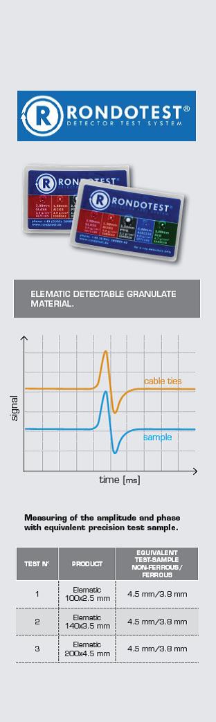 -    מגוון המוצרים הניתנים לגילוי שלנו נבדק באופן בלתי תלוי על ידי RONDOTEST, על פי תקן בדיקה בלתי תלוי ביצרן לגלאי גופים זרים בתעשיית המזון והפרמצבטיקה.