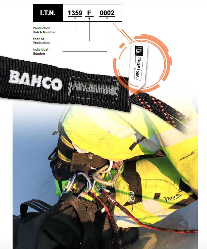 לבולמי הנפילה של באקו 3875-LY1/-LY2/-LY3 ו-3875-WL 1 יש מספרי מעקב נפרדים, עם תגיות אזהרה תפורות המציינות את המשקל המקסימלי של הכלי וכן מדריכים למשתמש. תוויות I.T.N מוצמדות באופן קבוע כדי לאפשר עקיבות מלאה.