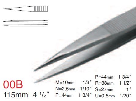 פינצטה 00B, קצה חד, אורך 115 מ"מ, פינצטה ישרה וחלקה RUBIS, פינצטה רוביס