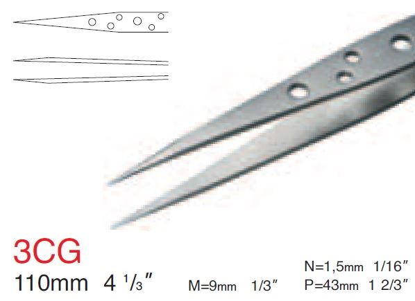 פינצטה 3CG, קצה חד, אורך 110 מ"מ, פינצטה ישרה וחלקה, פינצטה רוביס RUBIS