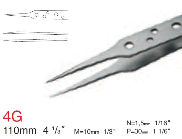 פינצטה 4G, קצה חד, אורך 110 מ"מ, פינצטה ישרה וחלקה, פינצטה רוביס RUBIS
