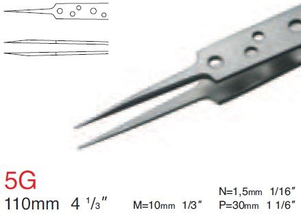 פינצטה 5G, קצה חד, אורך 110 מ"מ, פינצטה ישרה וחלקה, פינצטה רוביס RUBIS