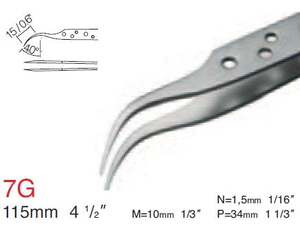 פינצטה 7G, קצה חד, אורך 115 מ"מ, פינצטה מכופפת וחלקה, פינצטה רוביס RUBIS