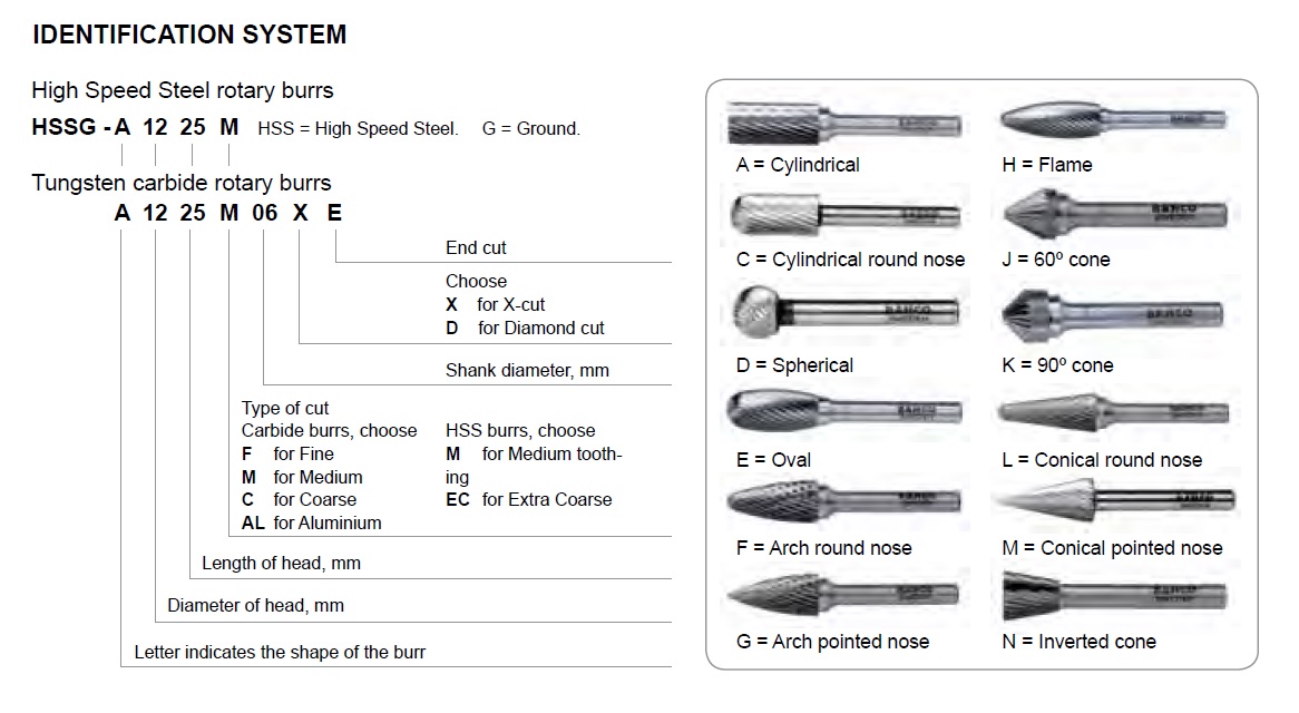 אפשר לספק פצירות גליליות (A) ופצירות בצורת קונוס הפוך (N) עם חתך קצה |