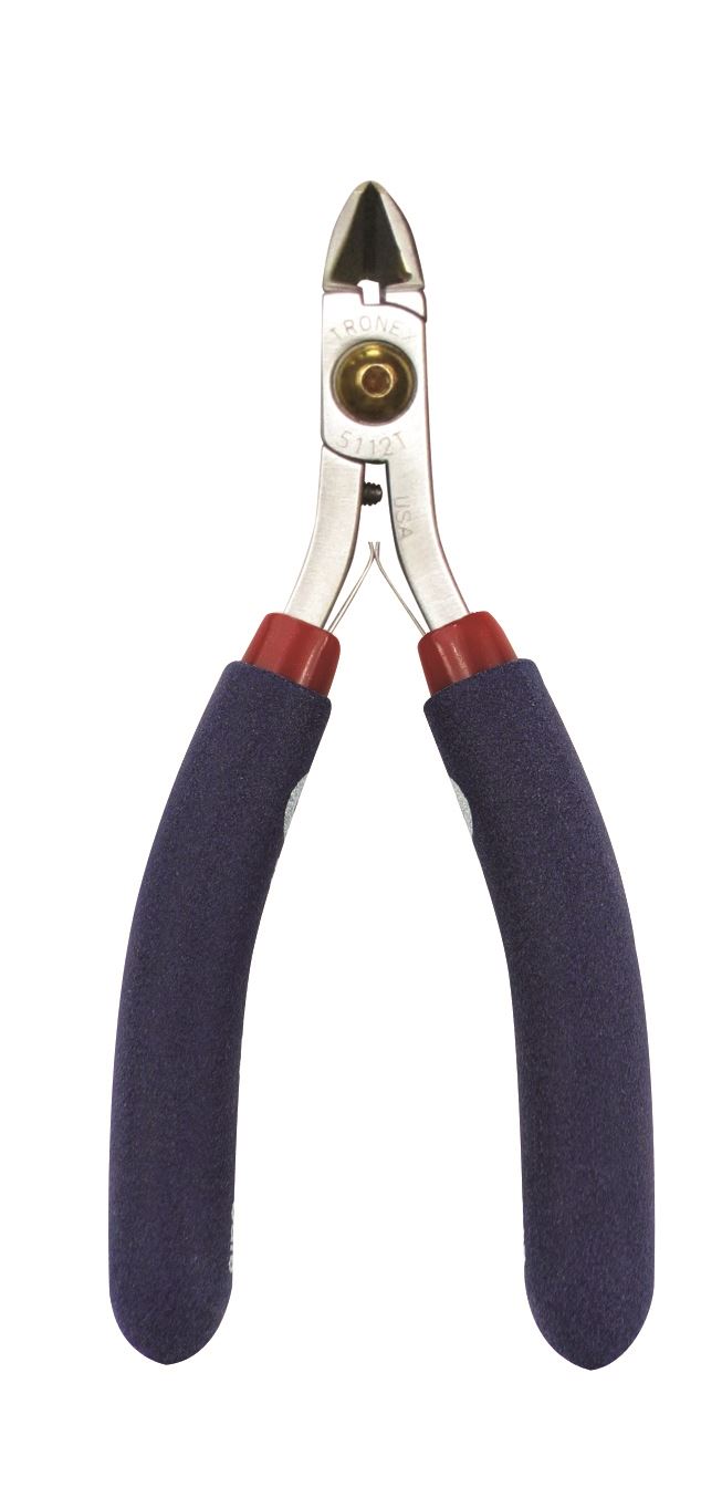 קטר T לחיתוך חוט קשה/פלדה עם קצוות וידיה אנטיסטטי ESD , שטוח FLUSH, כושר חיתוך 0.2-0.65 מ"מ , סוג שפתיים וידיה , דרגת קושי 79-81 HRC יצרן TRONEX