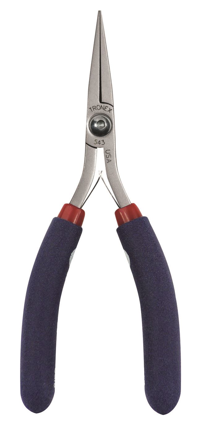 Tronex flat nose pliers,long jaw, standard handle length, no step at tips.