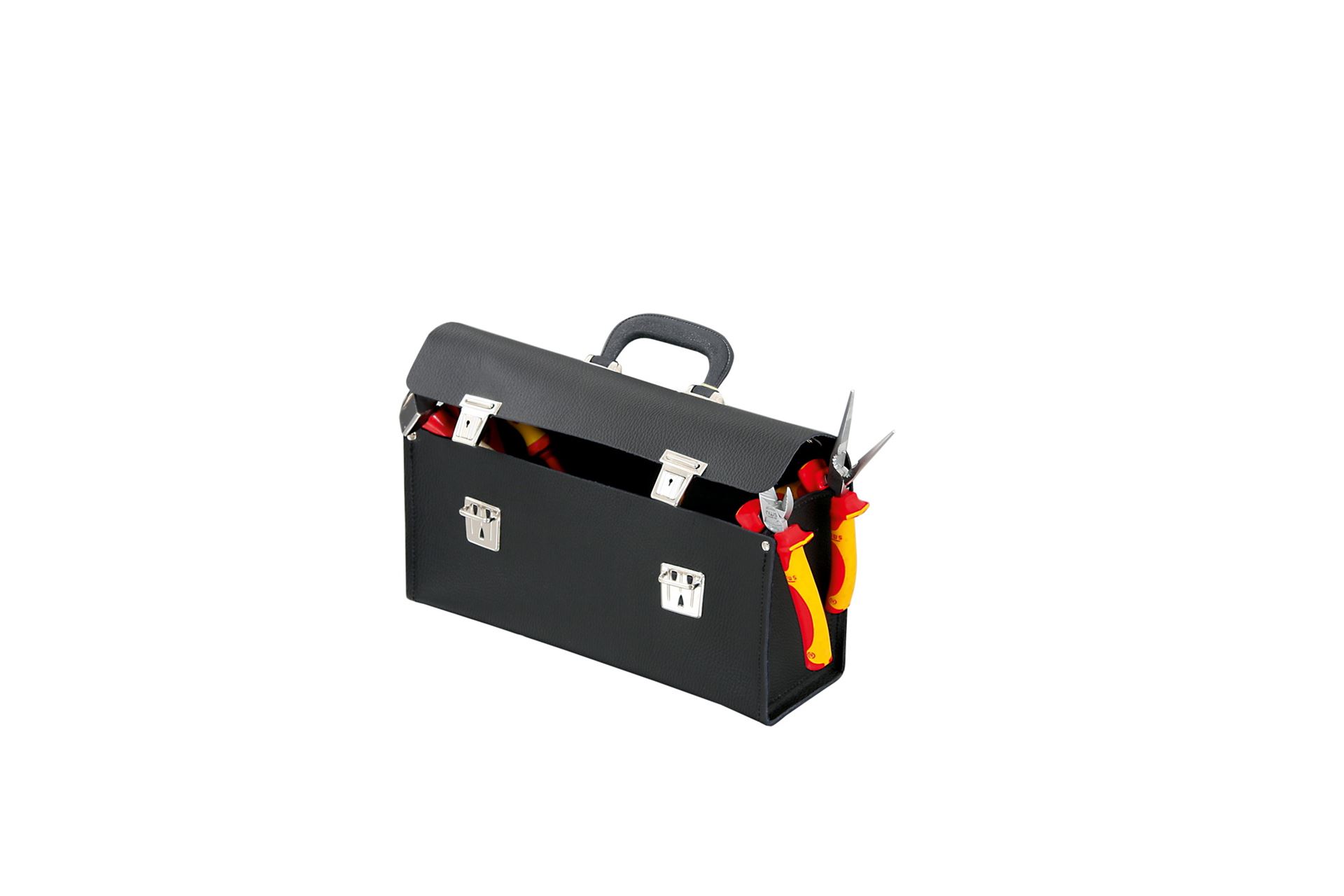 מיוצר מעור אמיתי, שני מנעולי מתכת, ידית ארגונומית. מידות: 340X110X170 מ"מ HEPCO & BECKER