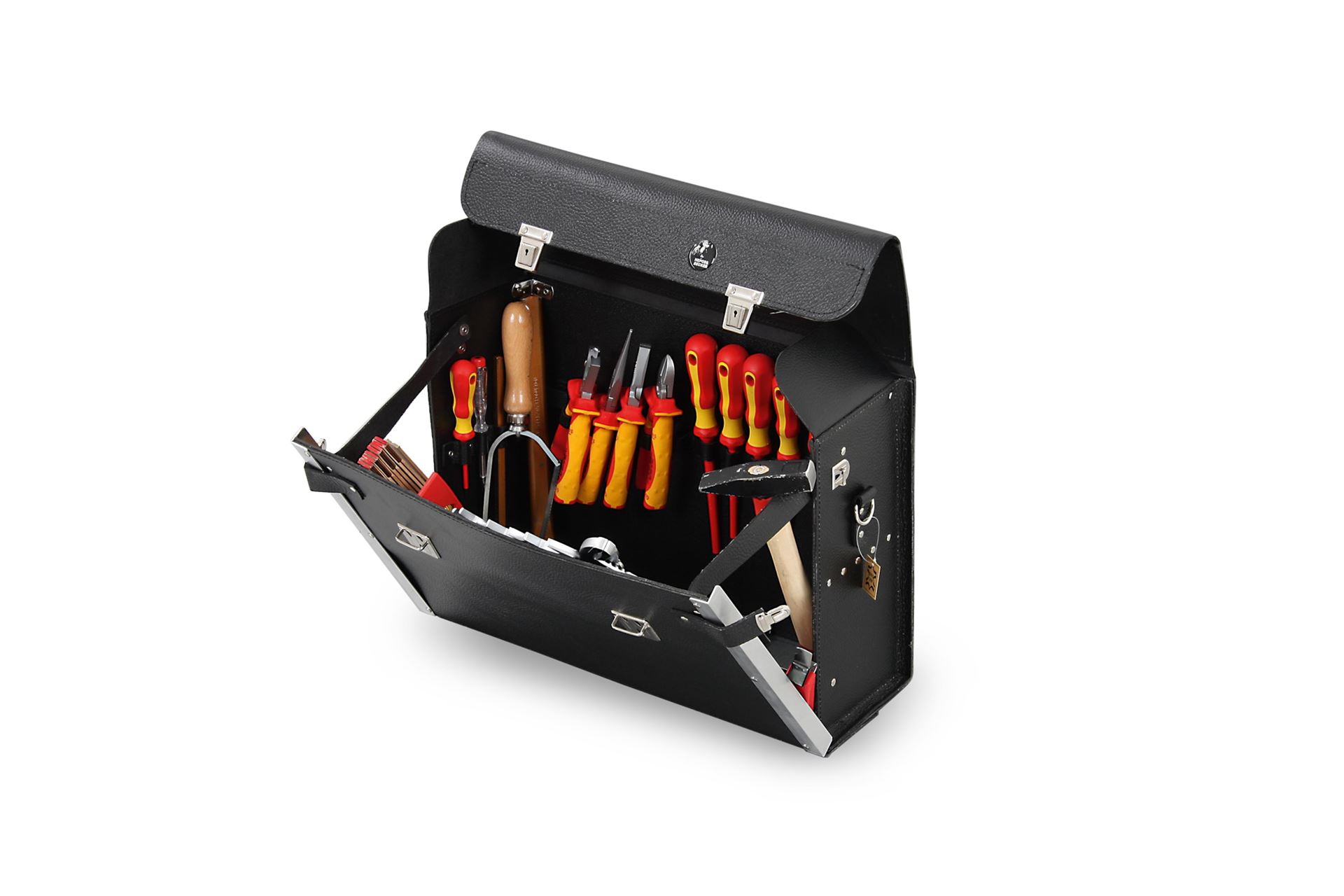 מיוצר מעור אמיתי, שני מנעולי מתכת, חלק קדמי מתקפל, בסיס מתכת מגולוונת, קצוות מחוזקים באלומיניום, ידית ארגונומית, טבעות נשיאה. מידות: 470X160X310 מ"מ HEPCO & BECKER