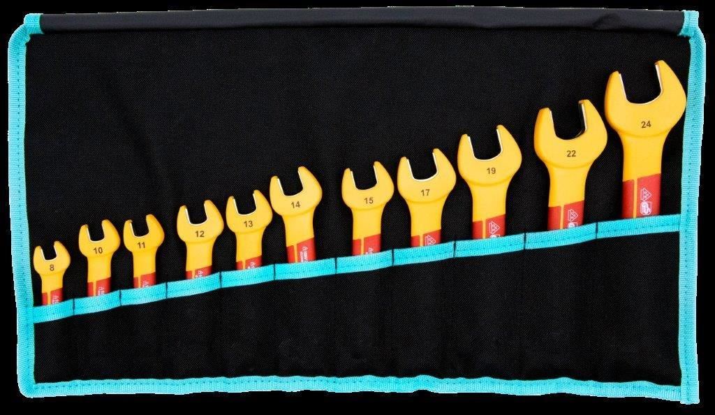 סט מפתחות פתוחים מבודדים 1000V לעבודה עם חשמל חי מידות בנרתיק איכותי סך הכול הסט כולל 11 מפתחות תוצרת WHIRLPOWER
