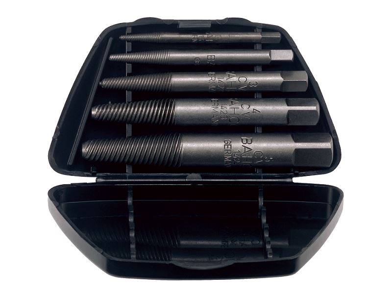 סט של חולצים לברגים שבורים ותקועים, 5 חלקים /סט חולצים / סט חולצי ברגים/ חולץ ברגים גימור: התזת חול חומר: כרום ונדיום מתאים לברגים מגודל M3 עד M18 מקט:1435/5 ,יצרן:BAHCO