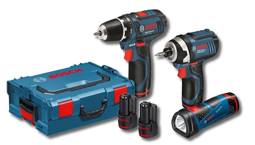 סט מברגת אימפקט 10.8V + מברגת פוטר + פנס + 2 סוללות 2Ah ליתיום + מטען מהיר במזוודה בוש