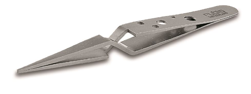 פינצטה פעולה הפוכה להנחה קלה של ריסים נפרדים. יש ללחוץ בעדינות כדי לפתוח ולשחרר על מנת להניח את הריס רוביס
