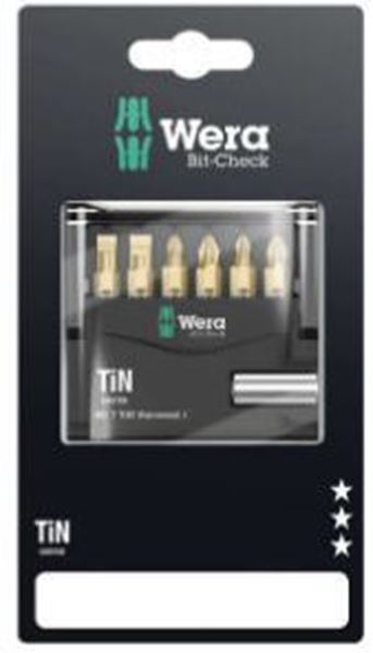 סט ביטים טיטניום מיני צ'ק WERA בקארד-893/4/1 K 1 x 1/4"x50;851/1 TiN PH 1 x PH 1x25; 1 x PH 2x25;855/1 TiN PZ 1 x PZ 1x25; 1 x PZ 2x25;800/1 TiN 1 x 0,8x5,5x25; 1 x 1,2x6,5x25;