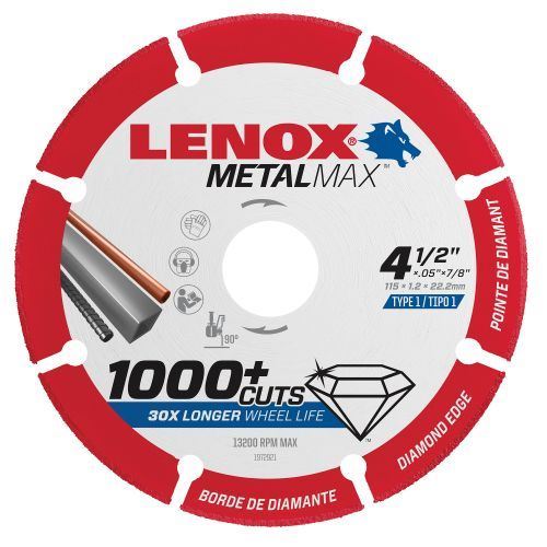 דיסק יהלום "4.5 החותך פלדה,פחים, פלב"ם ,ברזל בניין , יציקה,אלומיניום,(מומלץ עם קירור למניעת הדבקת שבבים) ומתכות אל ברזליות.המוצר הזה מבטל את הצורך בשימוש בדיסקים אברזיביים כאשר הוא מאפשר באותם תנאי חיתוך (אותם מהיריות ואותם כלים של דיסקים אברזיביים:) 1) יותר מ1000 חיתוכים לדיסק (זה למעשה 30 פעם יותר מדיסק אברזיבי רך) 2) מונע את הצורך בהחלפת דיסקים רבים כך שמגביר את קצב העבודה 3) מחזיק את הקוטר שלו לאורך כל חיי השירות כך שעומק החיתוך נשאר קבוע 4) מייצר הרבה פחות ריח ואבק מדיסק אברזיבי רגיל. LENOX