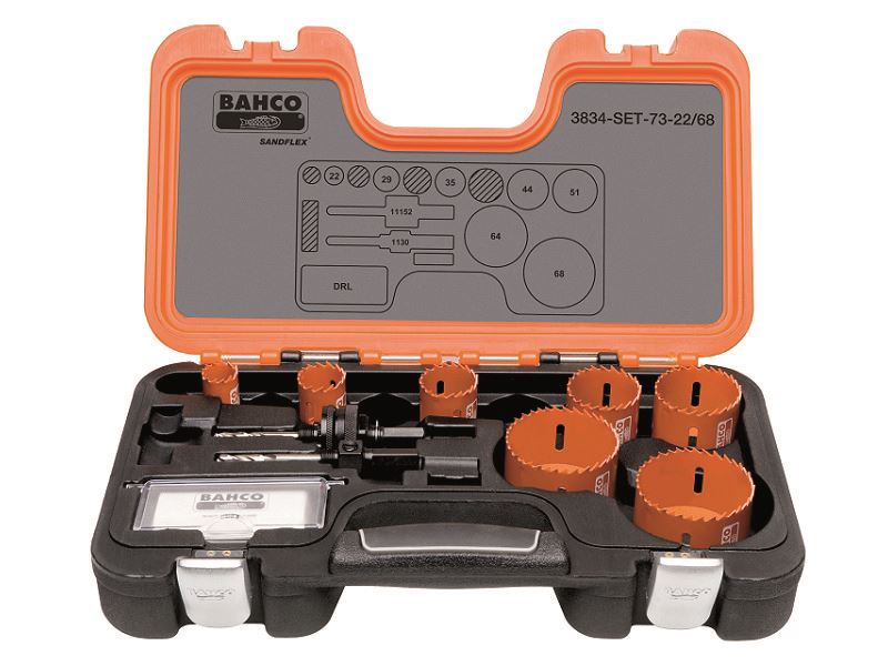 סט משור / מסורי/ מקדחי כוסמשור / משור / מסור / משור / מסורי לעץ/למתכת במארז פלסטיק קשיח כולל משור / מסורי/מקדחי כוס במידות: 22,29,35,44,51,64,68 מ"מ + אביזרים • סט משור / מסורי/ משור / משור / מסור / משור / מסורי כוס בי-מטל Sandflex הכולל גדלים סטנדרטיים באיחוד האירופי המקובלים בתעשיית התקנות החשמל. BAHCO