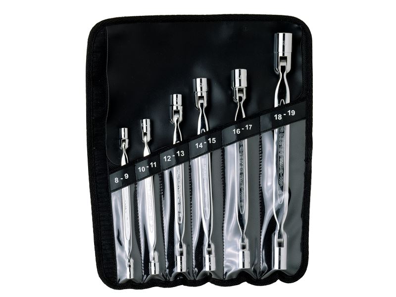 סט של מפתחות בוקסה מתנדנדות / גמיש דו צדדי/ קצה כפול ובוקסות 12 פינות אריזה: בנרתיק פלסטיק שחור עם סגירת צמדן סקווטש כולל מידות 8*9 10*11 12*13 14*15 16*17 18*19 מקט:4040M/6T,יצרן:BAHCO