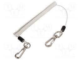 סלילל אבטחת כלים מנפילה עם 2 קרבינות נבדק עבור עומס סטטי עד 25 ק"ג טבעת ממתכת להידוק מדוייק חוט המתכת מצופה פליאטילן לעמידות גבוהה נמתח עד 2מטר קוטר כבל של 1 מ"מ"תוצרת BAHCO