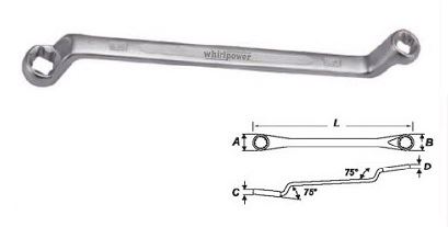 מפתחות רינג רינג 75° E-TORX, במידות: E6xE8, E7xE11, E10xE12, E14xE18, E16xE22, E20xE24, באורכים: 147 מ"מ, 159 מ"מ, 175 מ"מ, 215 מ"מ, 234 מ"מ, 262 מ"מ, מקטים: 1243-2-0608, 1243-2-0711, 1243-2-1012, 1243-2-1418, 1243-2-1622, 1243-2-2024 WHIRLPOWER