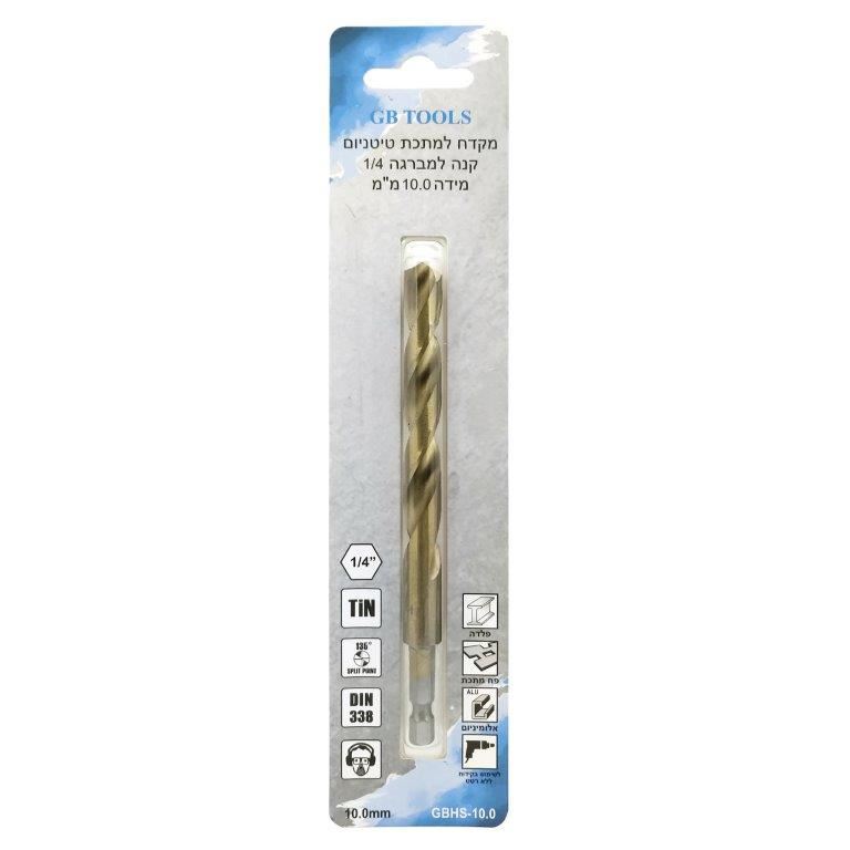 מקדח למתכת טיטניום 10 מ"מ קנה משושה למברגה אימפקט