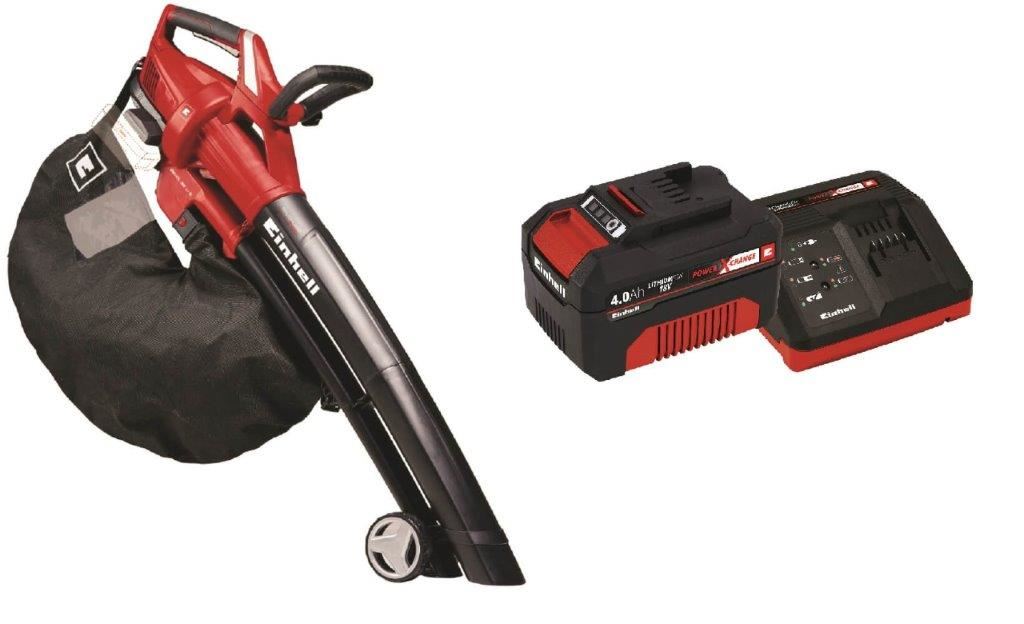 מפוח נטען 36V ברשלס מהירות נשיפה 210 קמ"ש עוצמת שאיבה 720 M3/H מהירות אלקטרונית משתנה יחס גריסה 10:1 משקל 3.38 ק"ג מגיע עם מטען ושתי סוללות 36 וולט 4 אמפר לשעה שנתיים אחריות תוצרת EINHELL גרמניה