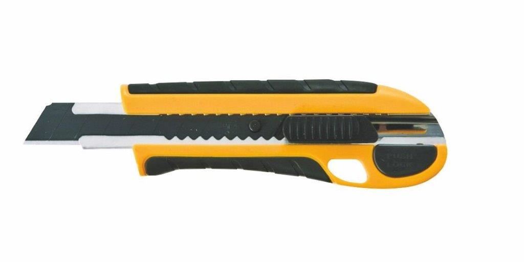 "A Japanese knife from KDS Japanese knife for professions Lock button to remove the old blade and replace it Possibility of securing the knife against falls Supplied with premium black blade Black blade with 8 stages Blade width: 18 mm Blade thickness: 0.6 mm Supplied with a complex blade + 2 additional blades located in the cartridge (see photo) Has an AutoLock auto-lock Model G-15 Made in Japan "KDS