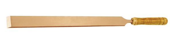 Flat scraper with beech handle Material: Copper Beryllium Non sparking Anti-magnetic and high corrosion resistance Die forged Fulfilling product standard DIN 3113