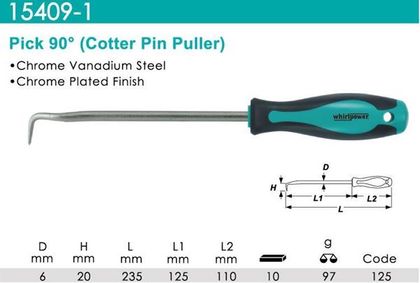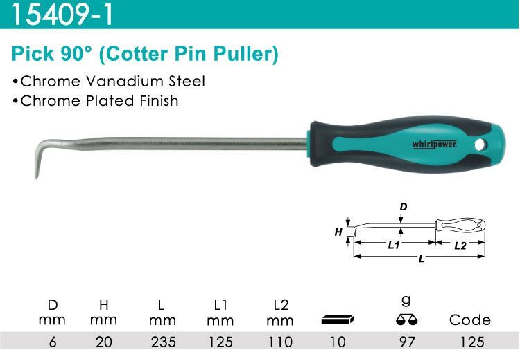 דוקרן ידית מברג 90 מעלות 220 מ"מ Whirlpower מקט:15409-1-125 whirlpower