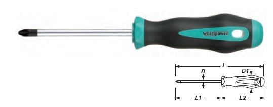 מברגי פוזידרייב Whirlpower באורכים:80 מ"מ ו 100 מ"מ, במידות:PZ1,PZ2 מקטים:1713-3-0801,1713-3-1002