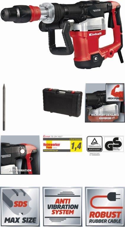 פטיש חציבה חשמלי 11 ק"ג עוצמת הלימה 32 ג'ואל J פוטר SDS מקס אביזרים איזמל שפיץ משקל 10.8 ק"ג / 15.35 ק"ג 1500W 1900 min-1 / 32 J שנתיים אחריות תוצרת EINHELL גרמניה