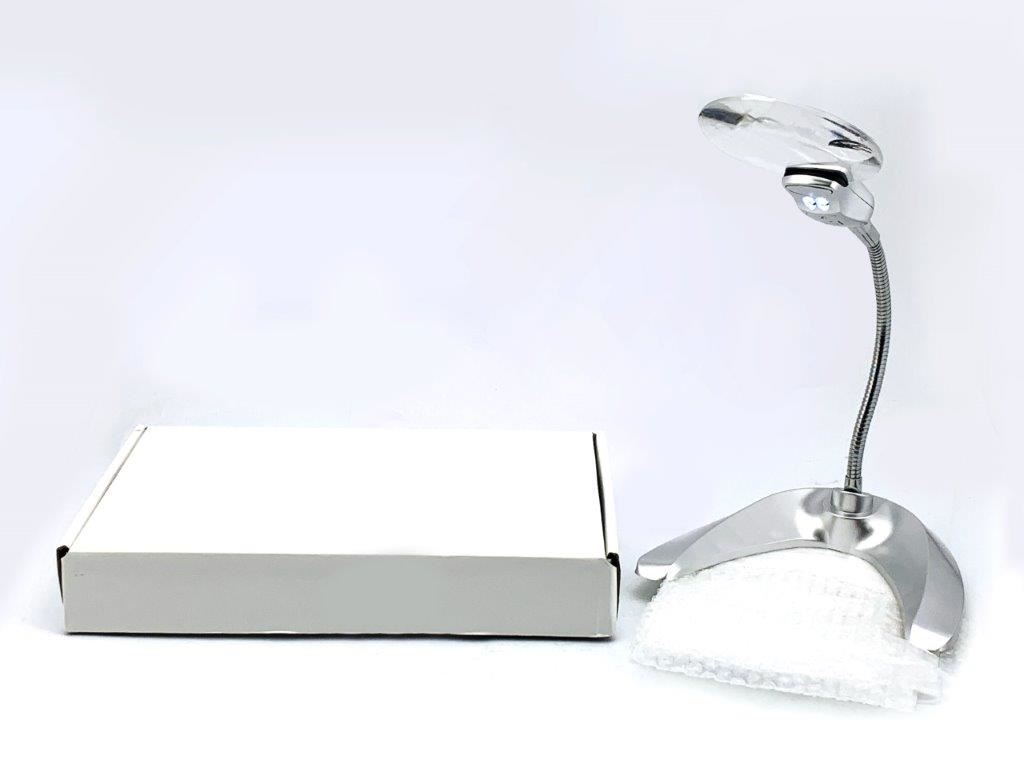 זכוכית מגדלת שולחנית עם הגדלה פי 3 / פי 4.5 +