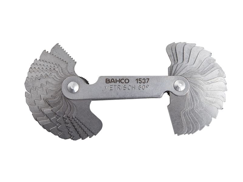מדיד פסיעה לבורג Withworth 55 מעלות, ומטרי 60 מעלות, 52 להבים 0.25-6 מ"מ מד מירווח מד עלים מד מרווח צעדים של: 0.25-0.30-0.35-0.40-0.50-0.60-0.70-0.75-0.80-0.90-1.00-1.25-1.50-1.75-2-2.25-3.00-3.50-4.00-4.50-5.00-5.50-6.00 • Withworth 4-62 4-4.5-5-6-7-8-9-10-11-12-13-14-16-18-19-20-22-24-25-26-28-30-32-36-40-48-60-62 מקט:1537,מד הברגות כפול מ"מ / אינצ'י דגם 1537 באקו מ"מ 60 מעלות ו – אינצ'י " W" 55 מעלות וויטוורט מכיל 52 להבים יצרן:BAHCO
