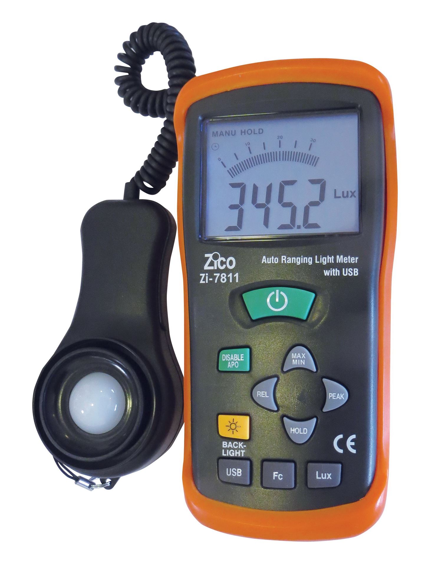 טווח מדידה אוטומטי עד 400,000 לוקס